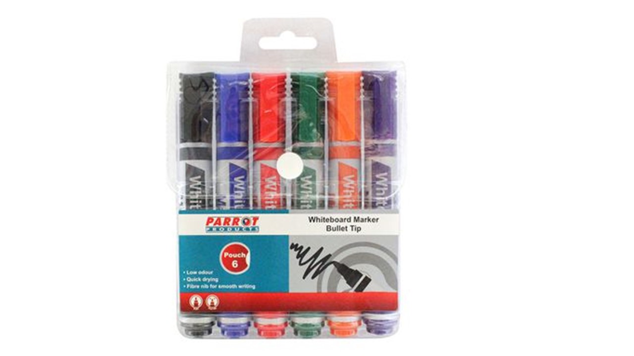 Parrot Whiteboard Marker Bullet Tip Wallet of 6